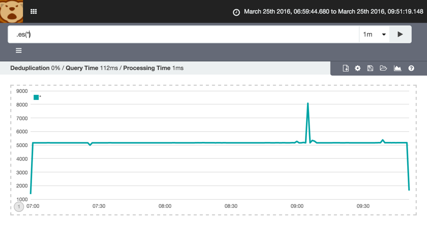The default expression, .es(*) shows a count of everything in Elasticsearch: