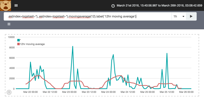 .es(index=logstash-*),.es(index=logstash-*).movingaverage(12).label('12hr moving average')