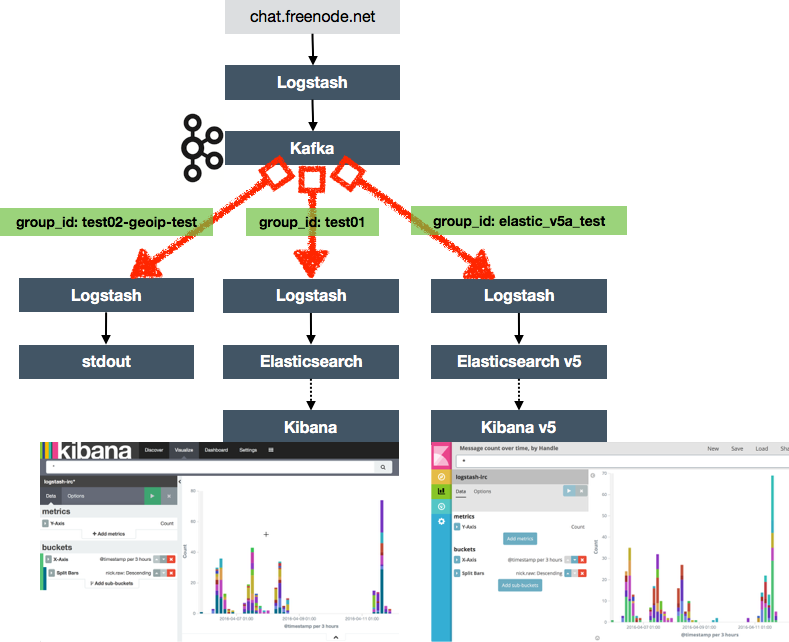 - Testing the Elastic stack v5 alpha release by processing the same source data again but with a different version of the downstream tools, enabling a proper like-for-like comparison of the pipeline. This is similar in concept to an idea that Gwen Shapira wrote about in an article in 2015.