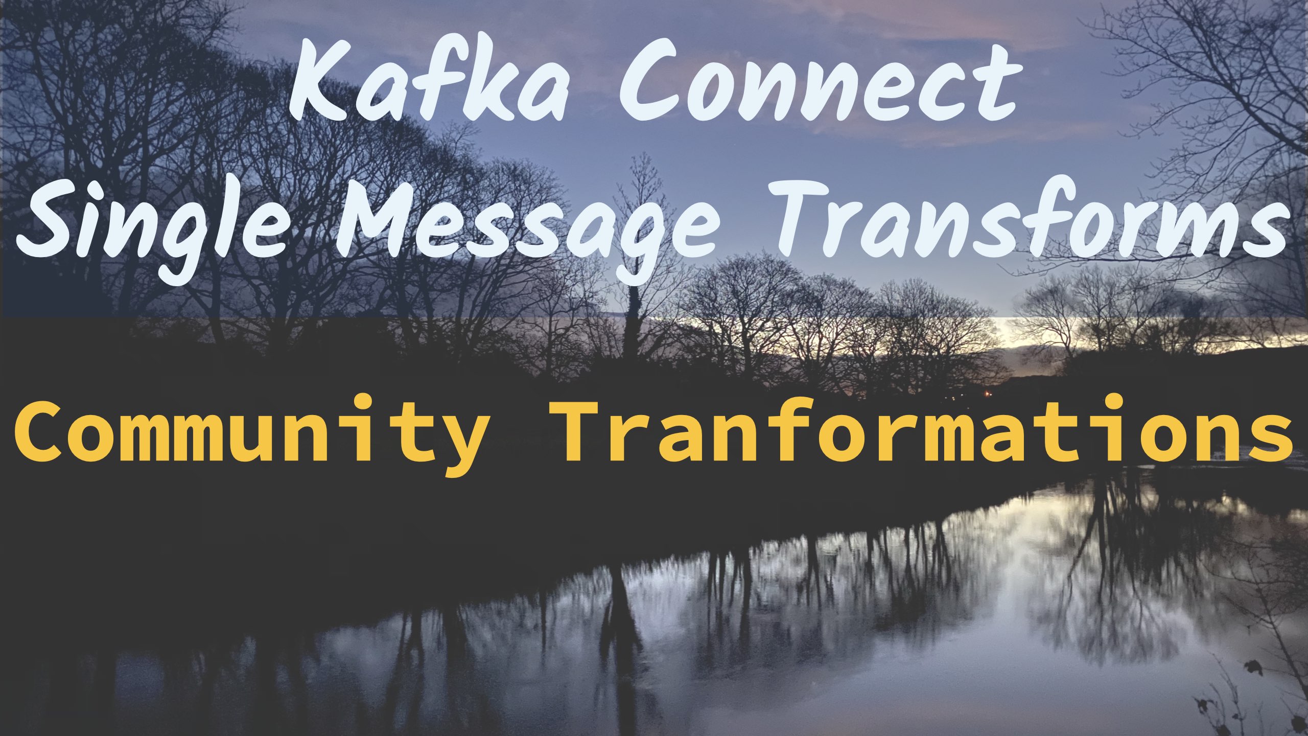 Apache Kafka ships with many Single Message Transformations (SMT) included - but the great thing about it being an open API is that people can, and do, write their own transformations. Many of these are shared with the wider community, and in this final installment of the series Iβm going to look at some of the transformations written by Jeremy Custenborder and available in kafka-connect-transform-common which can be downloaded and installed from Confluent Hub (or built from source, if you like that kind of thing). Also check out the XML transformation by the same author, which Iβve written about previously.