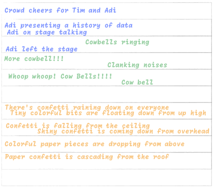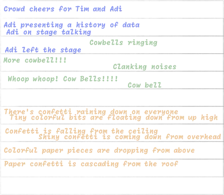 So as the scene evolves in front of the audience, so does the capture of “the moment” in the messages.
